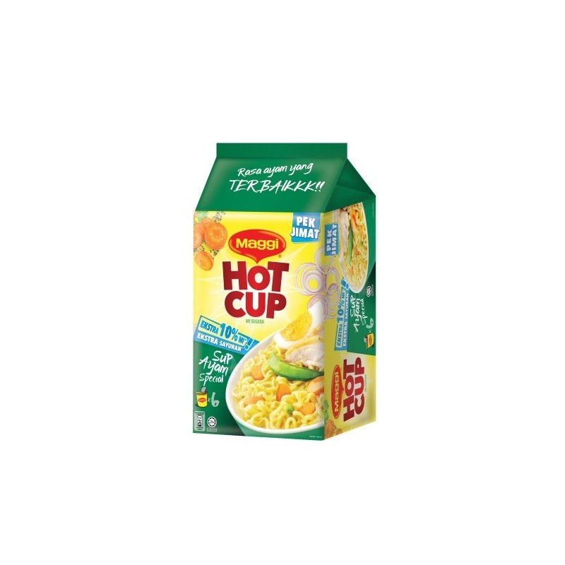 Maggi HOT Cup Chicken Soup Special made with real chicken essence and a secret blend of garlic and onions that makes it hearty and aromatic.