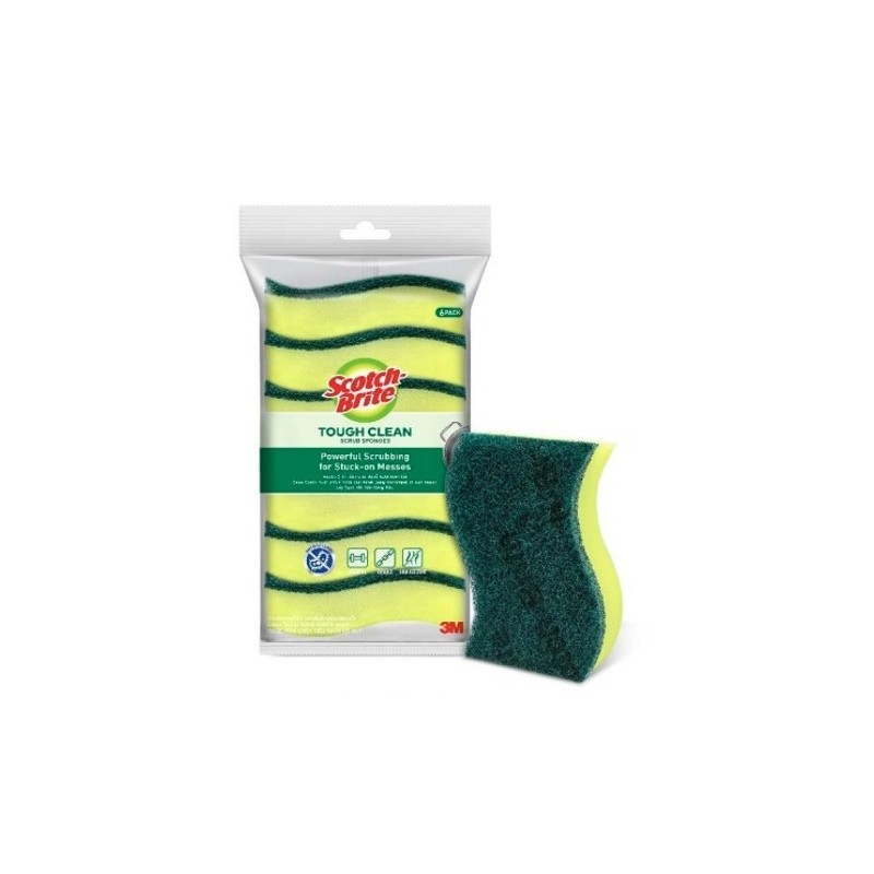 3M Scotch-Brite Tough Clean Scrub Sponge 6s (Wave Shape)